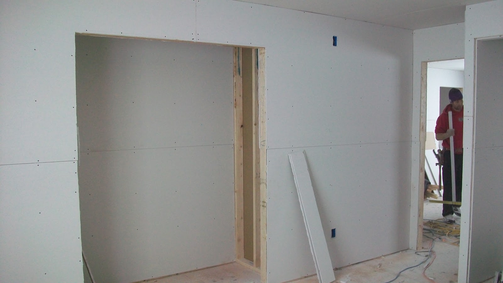 At the end of the first day of hanging drywall, the entire upstairs and part of the main floor were done.
